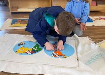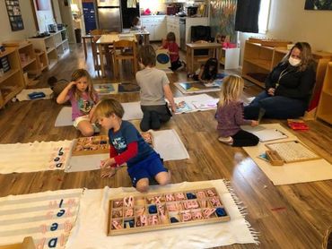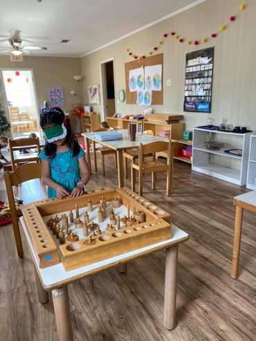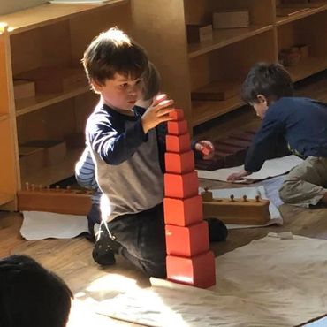 Elan Vital Montessori School’s Primary Program offers a unique, mixed age classroom environment for children 3 to 6 years old. EVM provides the children with freedom to explore and learn from a carefully prepared environment. The classroom is designed to expose students to various subjects that meet the child’s innate natural desire to learn. Students engage in individual learning experiences, one on one interactions with teachers and peers and use manipulative materials to aid in their learning. Mixed age groups allow younger children to learn by observing and interacting with the older children and learn at a faster pace. Older children gain more confidence by helping and re-teaching what they have learned. Students in a mixed age group environment, work by helping one another while gaining self- confidence and self-discipline. In the process, students discover independence, confidence, and innovation.